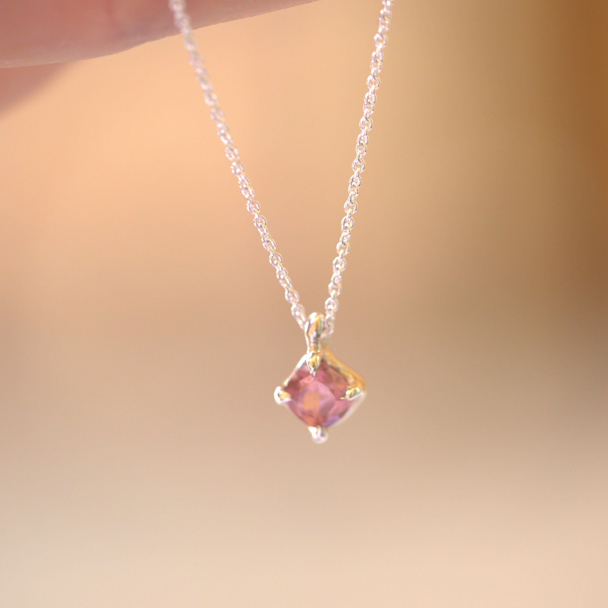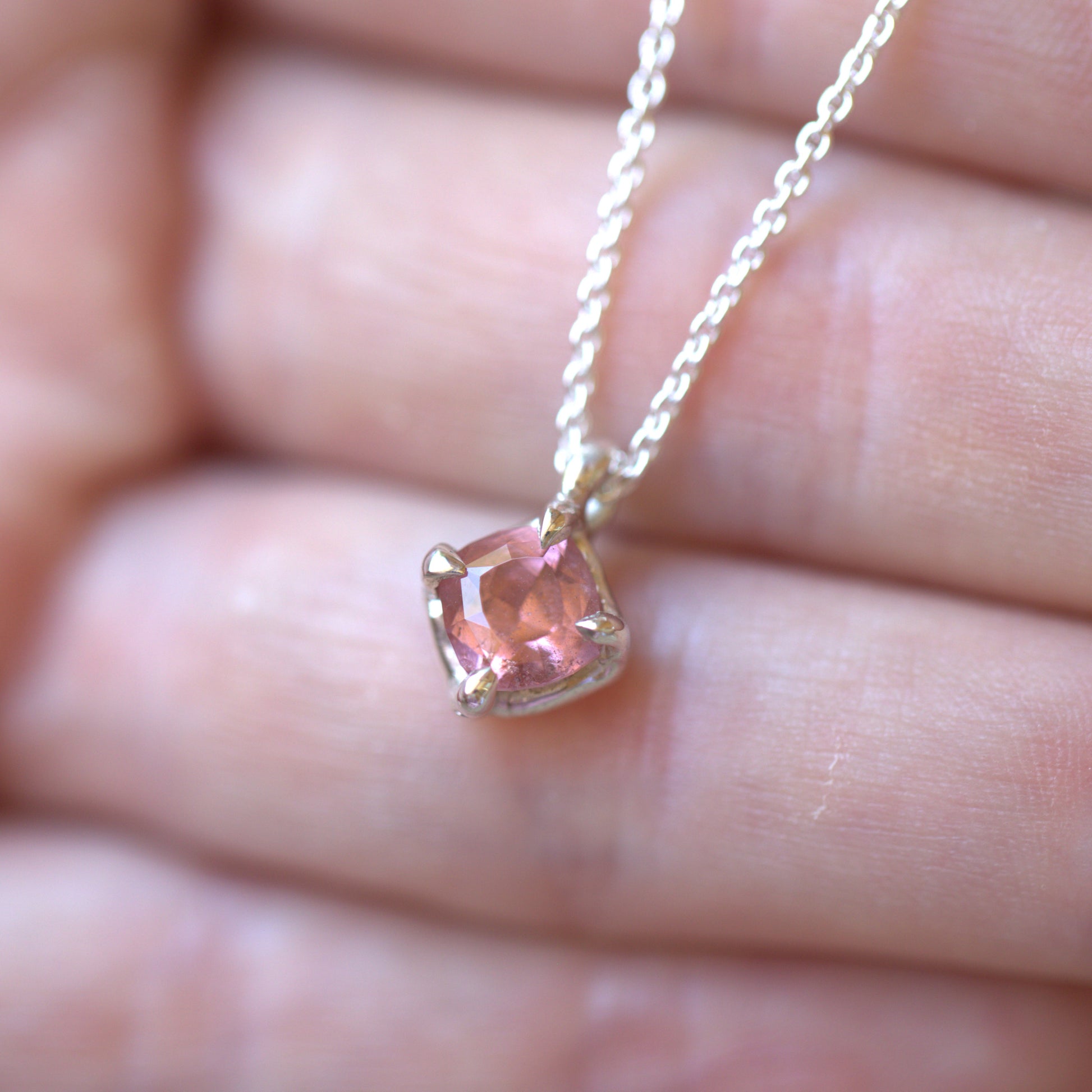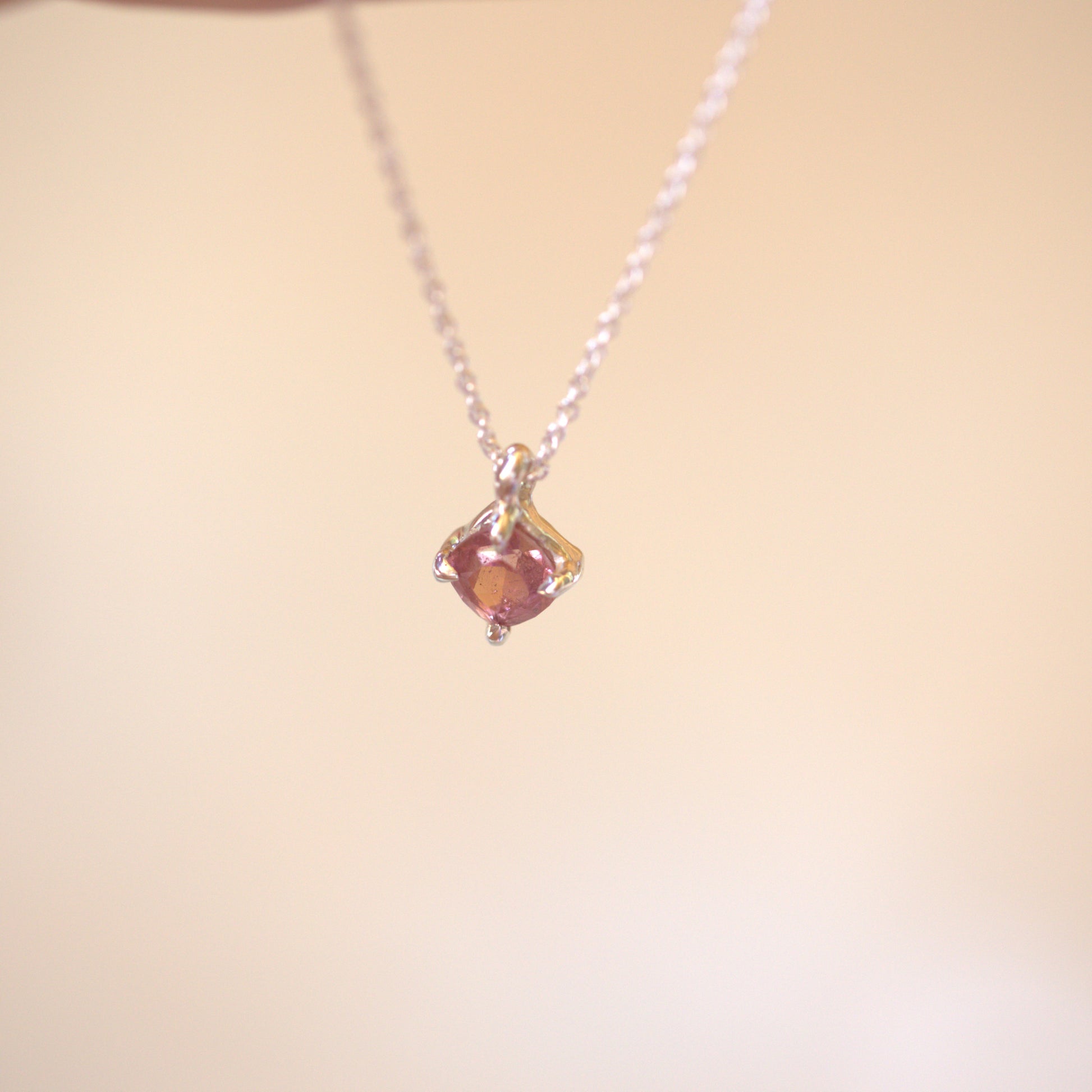 This beautiful handmade Sterling Silver pendant features a stunning natural pink Tourmaline. It has been made into a simple four claw setting that has a very organic vibe to it.