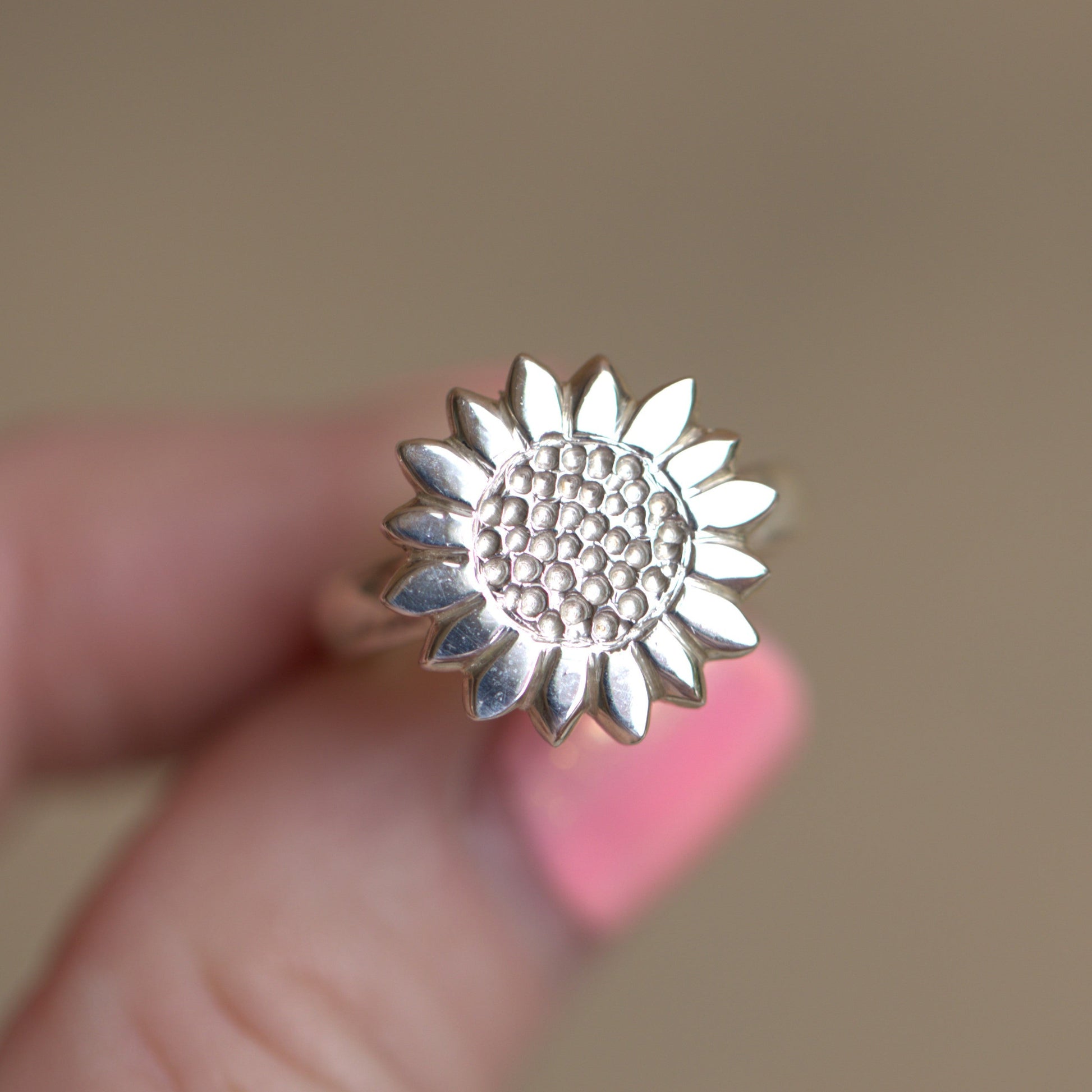 A beautiful little Sterling Silver handmade Sunflower ring.